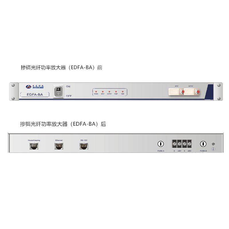 本手册是 19 英寸机架型掺铒光纤功率放大器(EDFA-BA)设备的使用说明。该设备主要用在某些长距离高速率的通信场合,提高线路的入纤光功率。