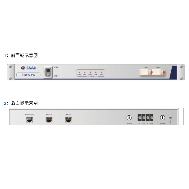 前置掺铒光纤放大器设备前面板如图 1 所示,后面板如图 2 所示。